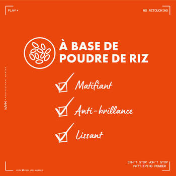 Découvrez notre première poudre lissante mate tenue longue durée enrichie en poudre de riz absorbante ! Sans transfert. Ne coule pas. Maquillage impeccable. Couvrance transparente pour un fini non collant qui n’assèche pas. Une sensation de légèreté et de confort sur la peau.