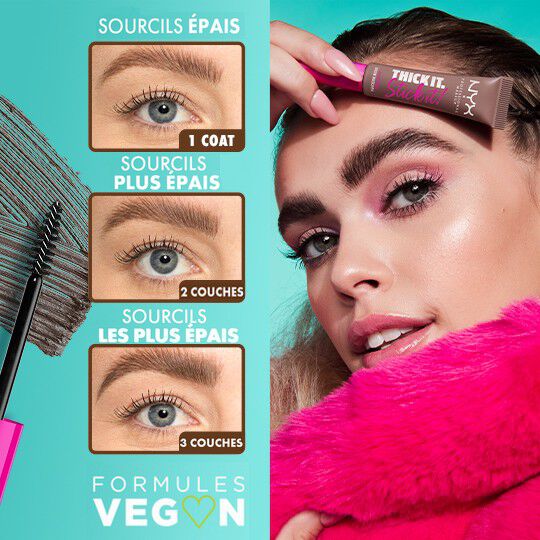 1 couche = sourcils épais 2 couches = sourcils plus épais 3 couches = sourcils encore plus épais
